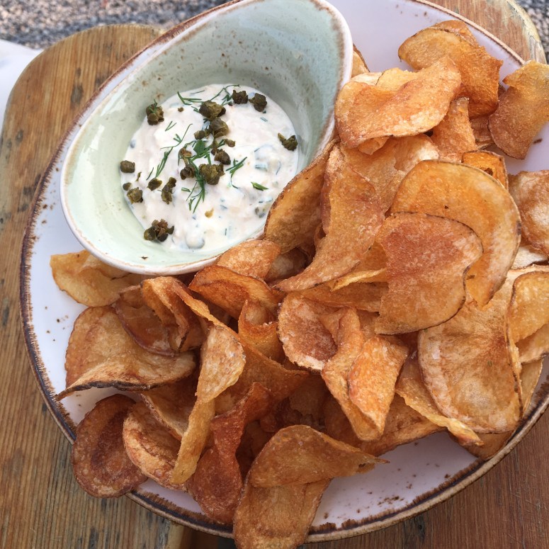 Chips & Dip: Tonnato, house-made chips & capers. For those of you not familiar with tonnato (I wasn’t), it is an Italian sauce with mayo and tuna. It’s traditionally served over sliced cold veal. In this case it paired well with perfectly crisp and salted house-made potato chips. The sauce was creamy with just the taste of tuna, not the tuna-salad texture.
