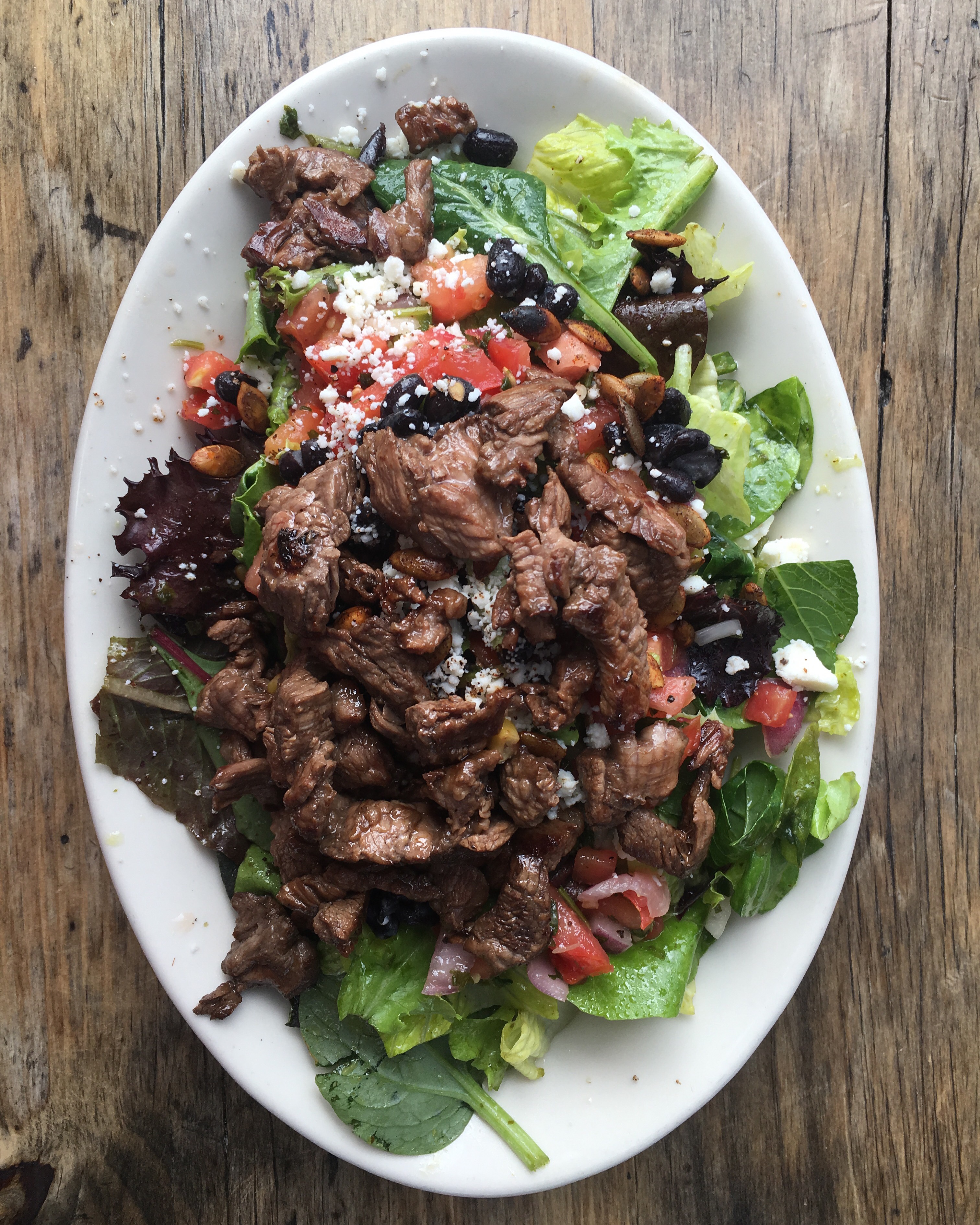 Laredos Grill: has a great happy hour. I just recently moved to Queen Anne and it is walking distance from my house. The Happy hour menu is simple but enticing. I ordered the Simple Salad for $4, regular price $6.95. This salad included Field greens, queso fresco, pico, pumpkin seeds and black beans in a cilantro vinaigrette. The attentive server asked if I wanted to add steak for$2 extra and I couldn't resist. This dish was so fresh and tasty more than enough as a dinner for only $6! The meat was cooked well with a nice smoky grill flavor. I will be back very soon.